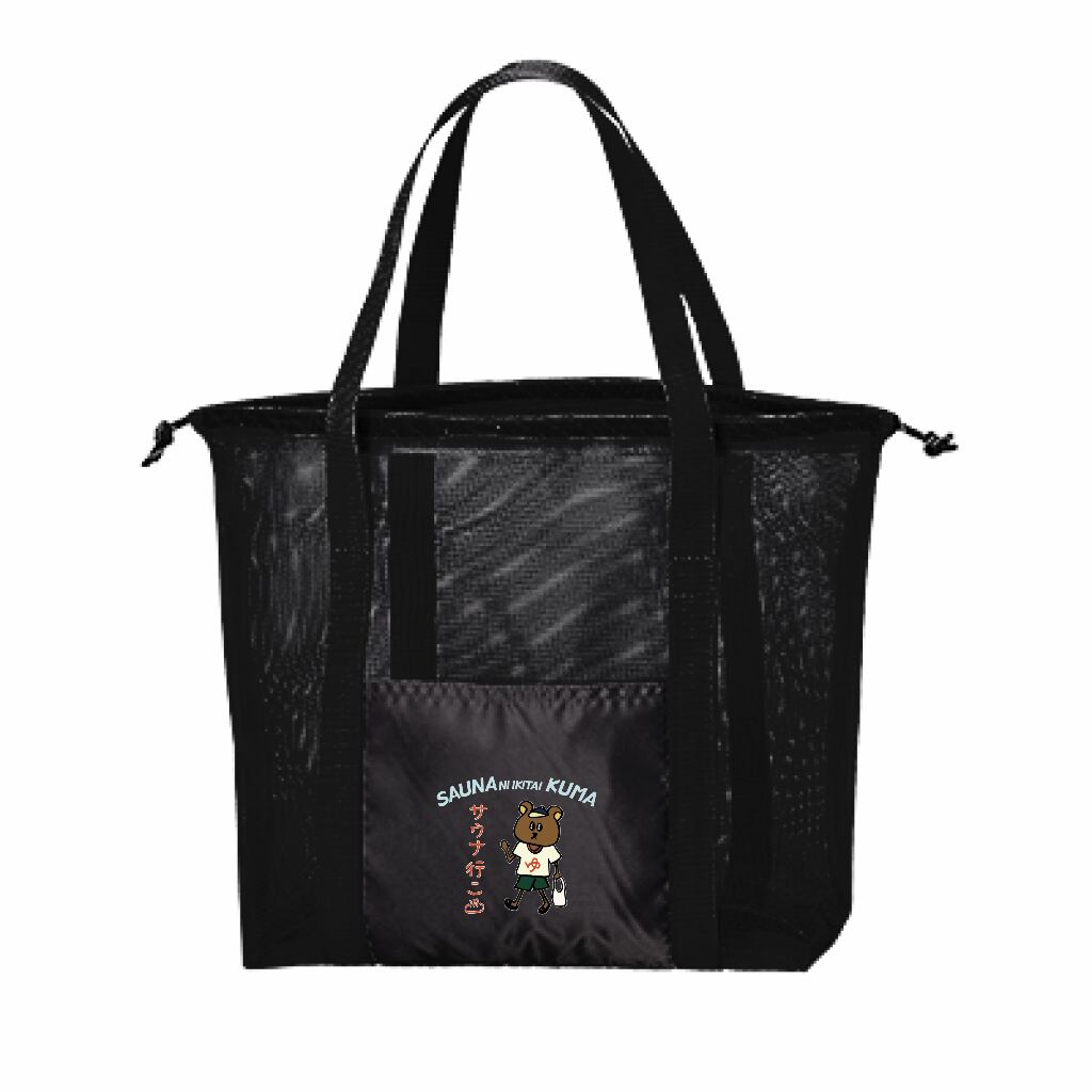 サウナに行きたいくま メッシュバッグL(ブラック) 「サウナ行こ」